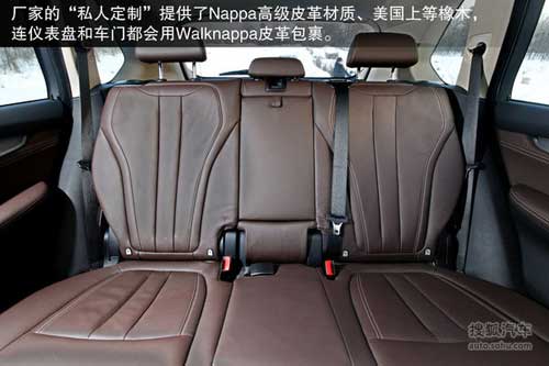 盡管空間沒有太大的變化,但對于X5這個級別的車型來說,乘坐空間還需要去質(zhì)疑或者測量么,我們似乎更應該關注一下它乘坐的舒適度。Dakota的真皮材質(zhì)觸感應該說是非常棒的,如果這都滿足不了你對品質(zhì)的訴求,那么快去“私人定制”吧,廠家還提供了Nappa高級皮革材質(zhì)、美國上等橡木、連儀表盤和車門都會用Walknappa皮革包裹。