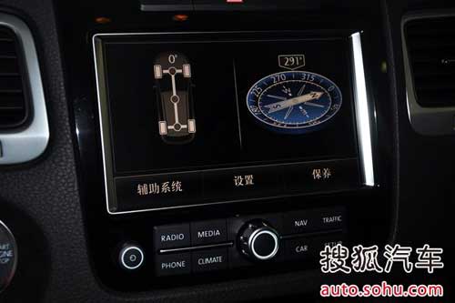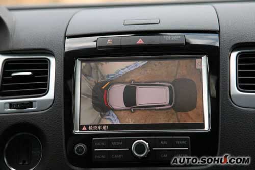野外的路面觀察是重要的,途銳多角度監(jiān)控攝像頭很有幫助,這和英菲尼迪的全景式監(jiān)控影像系統(tǒng)類似,但途銳的可視面積更大。通過位于車身周圍的四個攝像頭將周圍景物反映到中間的液晶屏上,在泊車時可以更直觀的看到四周情況。同時前部和尾部的攝像頭可以提供更廣的可視角度。這樣的功能要比奔馳G500或路虎的路面監(jiān)測能力進一步提升。