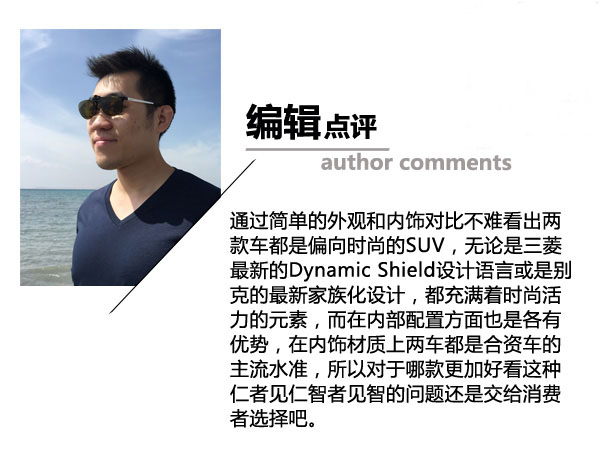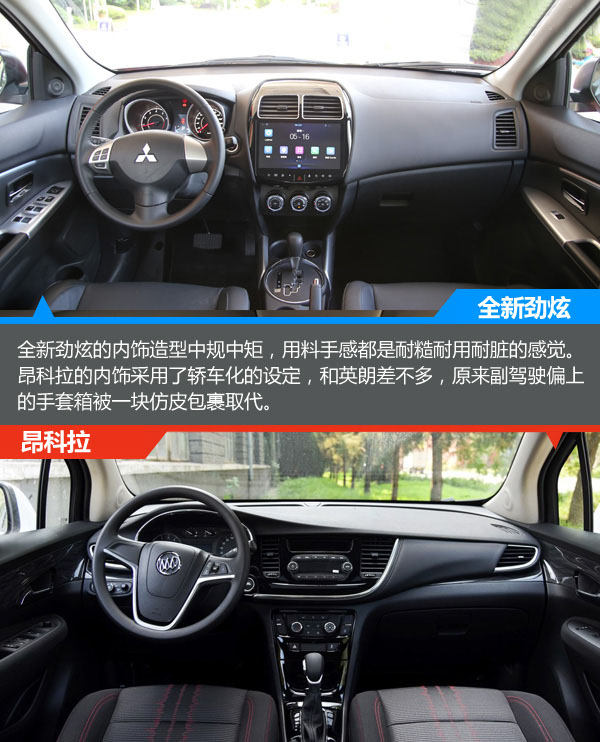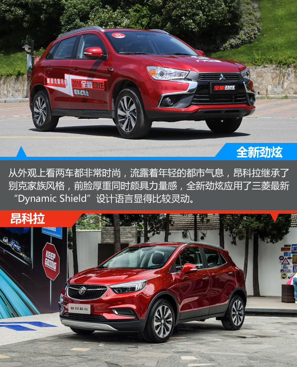 從外觀上看兩車都非常時(shí)尚,流露著年輕的都市氣息,昂科拉繼承了別克家族風(fēng)格,前臉厚重同時(shí)頗具力量感,全新勁炫應(yīng)用了三菱最新“Dynamic Shield”設(shè)計(jì)語(yǔ)言顯得比較靈動(dòng)。