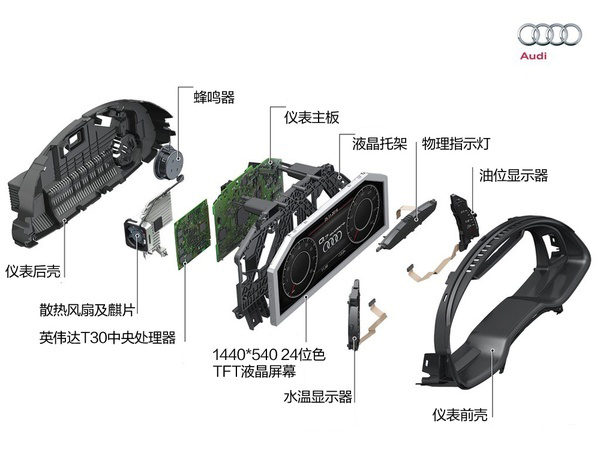 車內科技感營造一直是奧迪的拿手好戲,而在新一代Q7上也是做得淋漓盡致。12.3英寸的全液晶儀表盤此次搭載在了Q7上,顯示效果炫酷,整合了導航、車速、多媒體、車輛信息等豐富信息顯示,直觀方便,炫酷前衛。