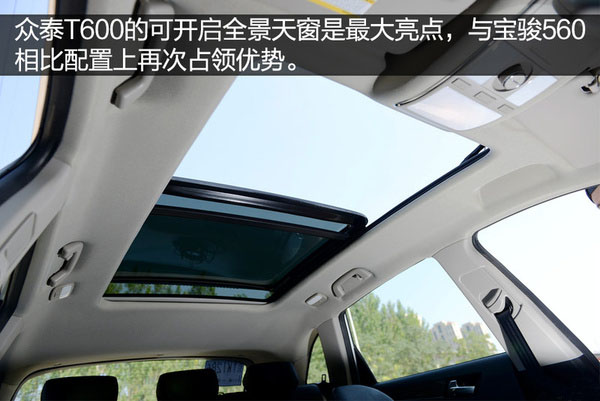 同樣T600的全景天窗機構(gòu)也一定程度上降低了車頂?shù)目臻g,雖然寶駿560頭部空間的表現(xiàn)要優(yōu)于眾泰T600但相比之下T600可開啟式全景天窗的設(shè)計會更討消費者的青睞,所體現(xiàn)出T600的配置要更高一籌。