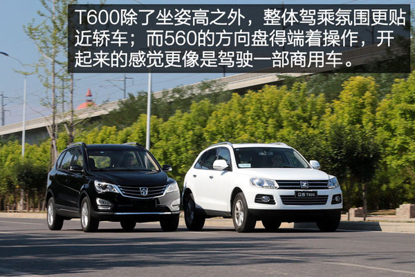 在聊駕駛感受之前我想先說說兩款車的駕乘氛圍,由于兩車中控臺造型以及方向盤角度的不一樣,所以兩款車營造出來的感覺也有所不同。T600駕駛席的視野角度更像是一部家用的城市級SUV,說白點兒就是除坐姿高一點兒,操作起來與一部轎車并無兩樣。但560則更像是一部商用車,尤其是操作方向盤時,那種感覺很像以前我試駕過的日產(chǎn)NV200,由于與水平方向夾角更小所以得端著開。