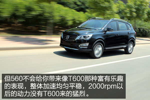 相比T600略帶出彩兒的動力表現(xiàn),寶駿560則顯得有些過于平淡乏味了。1.8L自然吸氣發(fā)動機雖然可以倚仗排量的優(yōu)勢,在低速起步時能表現(xiàn)出比T600更有勁道的動力響應(yīng),但是這種優(yōu)勢也只局限于2000rpm以下,可以說也就是起步的一瞬間,而當T600真正進入爆發(fā)狀態(tài)之后,560的提速感則顯得遜色了不少。