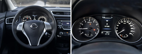 內飾方面,逍客的內飾風格采用了名為飛翼式的環抱一體化布局,整體風格與外觀相呼應,偏向年輕運動,很好的迎合了年輕人的審美。方向盤,采用了三輻式設計,方向盤多功能按鍵采用的是鍍鉻裝飾條,這樣給人感覺一種高端的運動感。儀表盤方面同樣采用的是是雙圓形類似炮筒式設計理念,不過中間的小屏幕顯示的信息非常豐富,行車電腦里還有對車道偏離提醒、盲區檢測、緊急制動以及駐車輔助等功能。