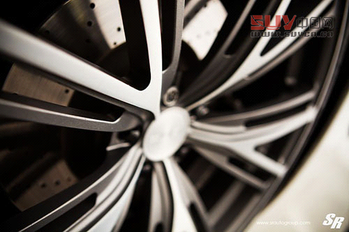 這臺(tái)漂亮的白色ML550加裝了PUR 9INE Monoblocks的22英寸輪轂,其表面采用了銀色拉絲工藝,搭配熏黑的車(chē)窗玻璃,使得整車(chē)的對(duì)比效果十分驚艷。