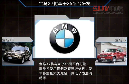 眾所周知,平臺化生產在研發成本上將得到有效控制,寶馬X5與X6均采用了相同的平臺打造,而其大型SUV寶馬X7也將基于X5平臺研發,設計風格將突出大型SUV的特點,尺寸要大于X5,造型設計將延續X5的設計風格。新車采用的流線型線條以及使用鋁制或碳纖維材料,使得整車重量減輕,大大降低了燃油消耗率。