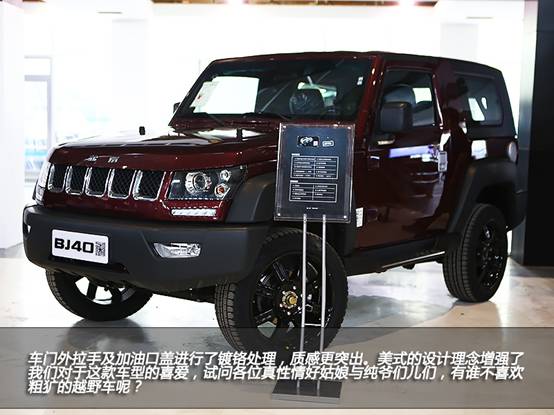 4月7日剛剛上市的北京(BJ)40遠行版繼承了一貫的硬派風格。從外觀看,北京(BJ)40遠行版延續經典的五孔鍍鉻格柵前臉,硬漢氣質逼人,給人的第一感覺它是一款能為越野英豪拔份兒的車。