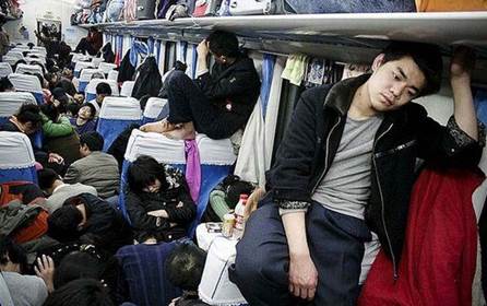 圖注:擁擠的火車廂