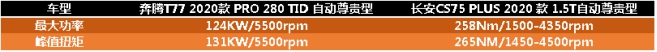 兩款車均采用1.5L渦輪增壓發(fā)動(dòng)機(jī),參數(shù)上,長(zhǎng)安CS75 PLUS領(lǐng)先一步,但其整車質(zhì)量方面多出110kg,油耗自然也會(huì)相比奔騰T77 PRO高出不少,況且奔騰T77 PRO還有第三代智擎魔方科技的加持,在保證258N·m,124kW的高動(dòng)力輸出下,熱效率可以高達(dá)39.06%,不但獲得了中汽中心001號(hào)“能效之星”的認(rèn)證,在上個(gè)月的節(jié)油大賽中,還跑4.9L/100km的極致油耗,可以說(shuō)既滿足了當(dāng)下年輕人的速度與激情,又兼顧了日常用車的經(jīng)濟(jì)成本。