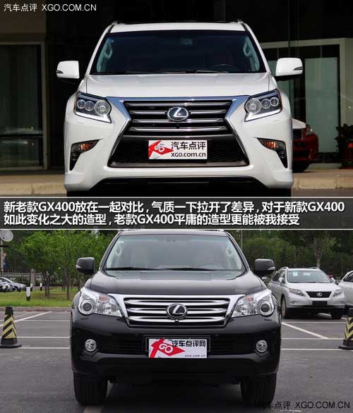 首先,我們來看看2014款雷克薩斯GX400的車頭前臉,采用全新的家族式前臉造型一改老款車型給人們的印象,前衛、冷酷的造型是我給新款GX400的評價。事實上,這么形容他一點都不夸張,霸氣的進氣格柵造型完全顛覆了老款車型的氣質。聽到不少朋友以此造型來評判自己的審美,相比之下,我是更愿意接受老款那溫順的造型。