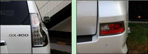 霧燈框的樣式也發生了變化,將老款GX400大燈的轉向燈移至到了下面的霧燈框內,由此設計出的新造型也比較符合整車前臉的氣質。