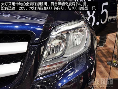 作為新的入門車型,奔馳GLK260在外觀上并沒有什么暴露自己身份的地方,除了尾部的標識之外,其余設計與GLK300完全一樣。展車的大燈使用的是傳統的鹵素照明,具備高度調節功能,但是沒有透鏡、大燈清洗、LED轉向燈等配置,與GLK300動感型配置相當。