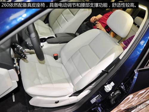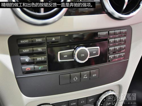 車輛內部也與GLK300沒有區別,260車型同樣配備了真皮座椅,并且具備電動調節和腰部支撐的功能。中控臺做工很細致,各按鍵的回饋非常出色,這些一直是奔馳的優勢。不過相比競爭對手來說,GLK的后排空間確實不算太寬裕,預計換代車型將會大有改觀。