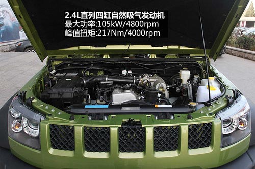北京汽車BJ40搭載的是G4CA-2.4L汽油發動機,最大功率105kW/4800rpm,最大扭矩217N·m/4000rpm。更側重低轉速下大扭矩動力輸出,在1800rpm即可達到90%的峰值扭矩,適應越野車的動力需求。BJ40匹配了一臺5速手動變速箱以及帶有四個檔位模式的分動箱。