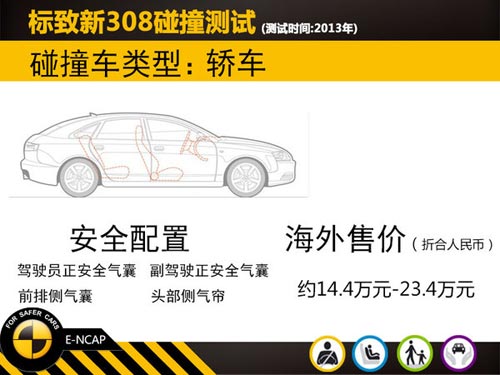 全新的標致308作為PSA集團的支柱車型有望于2014年底在神龍第三工廠進行投產。這款新車的安全性能受到眾多汽車消費者的關注。恰逢新標致308近日在歐洲做了碰撞測試并公布成績,網通社發現此車在側面柱撞中對駕駛員的保護仍需加強,現在我們就帶大家去看看這款新產品的測試情況。(本文數據來自E-NCAP)