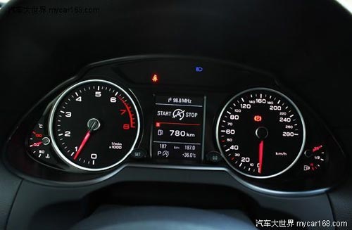 儀表盤設(shè)計(jì)方面則采用奧迪新式設(shè)計(jì),這在奧迪A1、A6、Q3等車型中同樣可見,目的是對(duì)家族特征的傳承獲得最大化。白色黑底的格調(diào),在紅色指針的搭配之下,顯得頗為動(dòng)感,而且功能指示清晰明了,令人賞心悅目。