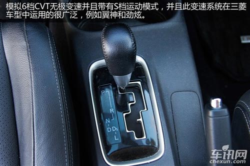 傳動系統上,模擬6檔CVT無極變速系統在三菱車系中運用很廣泛,并且技術也相對很成熟,看看國產后的三菱車型就知道了,變速器甚至包括發動機方面基本上都采用原裝進口。