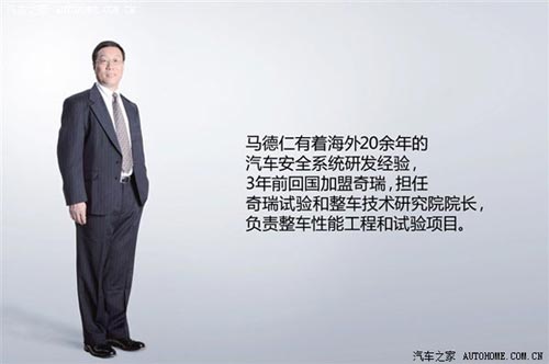 奇瑞所宣揚的這種安全品質建立在大量的研發基礎之上,團隊的建設和設備的投入是研發的根本,有著20年在德爾福汽車安全系統研發經驗的馬德仁在3年前從美國回來加盟奇瑞,現擔任奇瑞試驗和整車技術研究院院長,負責整車性能工程和試驗。