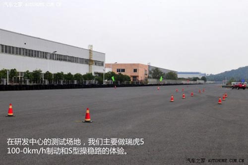 行駛時的動態穩定性也是車輛主動安全的一部分,我們所體驗的這輛瑞虎5是一款搭載2.0升發動機匹配5擋手動變速箱的車型(注:體驗車輛為試驗中心工程車,考慮到與最終量產車可能存在差異,所以,更全面的試駕體驗等拿到量產車后再奉上,本次先說說車輛在動態時的表現,僅供參考),在試驗中心的測試場地,工作人員設置了100 ~0km/h制動及S型的操穩體驗的兩個環節。