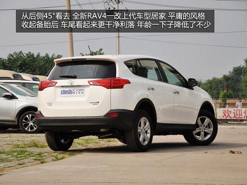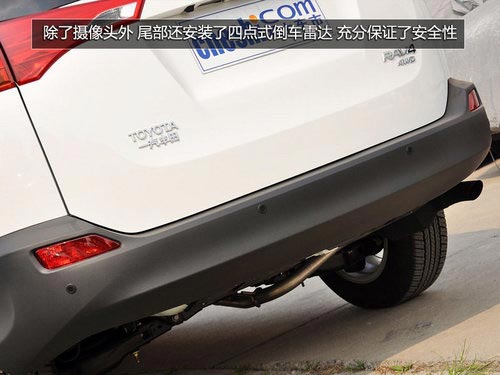 新RAV4的尾部也進行了重新設計,最明顯的變化就是取消了現款的備胎安置,使得整體尾部造型更加的整潔,也拋棄了身上的越野氣質,整個車身最吸引人的地方是尾燈的設計,兩條光帶的led尾燈在夜間點亮時十分漂亮,色彩的漸變也散發著迷人的味道。