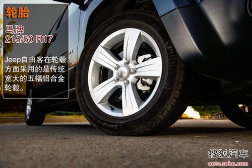 車頂的行李架不僅僅是裝飾作用,更注重實用功能。而天線造型以及車身上的各種"標識"則代表了其與眾不同的身份。自由客輪轂采用的是傳統的寬大的五輻鋁合金輪轂,輪胎則選用了馬牌215/60 R17型號輪胎。