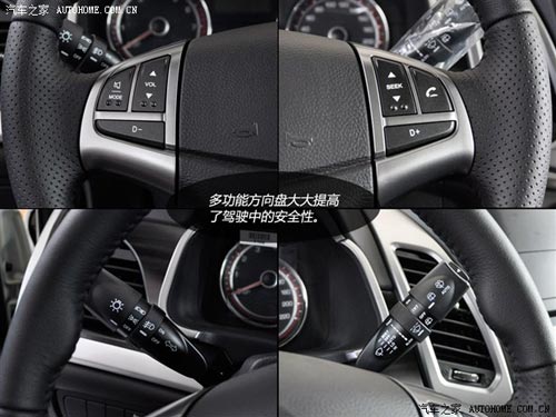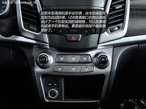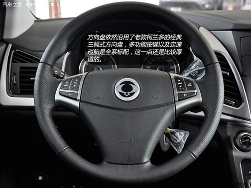 全新柯蘭多的中控臺可以說是完全脫離了老款柯蘭多中控臺的樣式,在這里也真的體現了雙龍設計師在該車上是花了不少的心思,層次感極強的基礎上應用了大量的銀色裝飾與烤漆元素,并且從做工方面來說,與之前比較也是有明顯的提升。