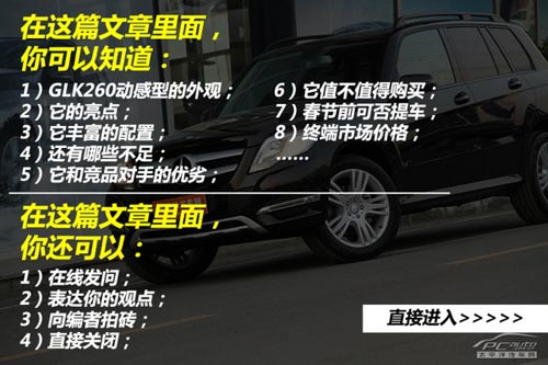 GLK260 4MATIC 動感型(下文簡稱“GLK260”)的出現(xiàn),并不是單純地豐富產品線。更深層的意義相信大家看到它的售價已經明白——從競品手里搶回更多的客戶。既然能突破油耗這一大關,并且能把售價拉至“3字打頭”,其光芒已經慢慢逼近同級標桿Q5。到底它有多大的能耐?我們帶著很多的問題(問題見下)看下去。