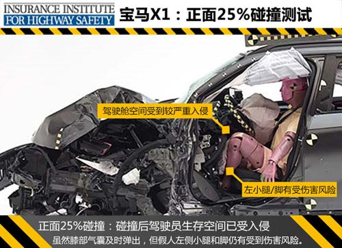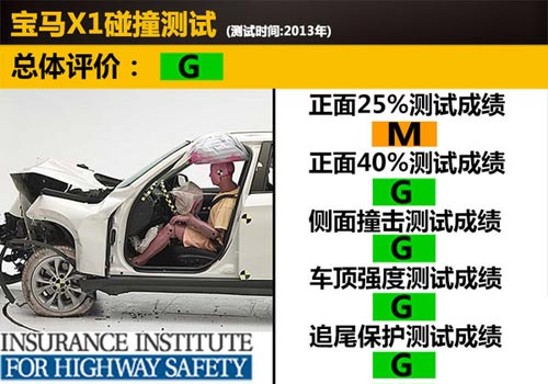 在豪華SUV領(lǐng)域,寶馬X1開創(chuàng)了先河,率先進(jìn)入緊湊SUV細(xì)分市場。即使在奧迪Q3、奔馳GLA等競爭者紛紛加入之際仍然沒有換代的跡象。日前這款新車型在美國進(jìn)行了碰撞測試,網(wǎng)通社查閱相關(guān)資料后發(fā)現(xiàn)此車的正面40%碰撞測試、側(cè)面碰撞測試、頂部碰撞測試以及頸部保護(hù)測試這4大項總成績均為最高級別“G”(良好),但正面25%測試的成績是“M”(危險),車內(nèi)模擬駕駛員假人的左側(cè)小腿和腳有受到傷害的隱患。