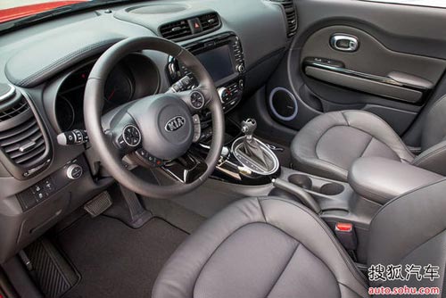 當然天窗僅是2014 SOUL Plus款眾多高級配置中的一項。其他還包括藍牙連接,可調式傾斜/伸縮方向盤以及方向盤音響控制,不過我們試駕的這輛車還配備了價值1400美元的音響套裝,即增加了自動空調控制、帶導航的八英寸的顯示屏、可變色揚聲器,而價值3000美元的Primo套裝則包含霧燈、全景天窗、一鍵啟動、可加熱/制冷前排座椅、可加熱后排座椅和倒車影像,全部加起來整車售價為24010美元。