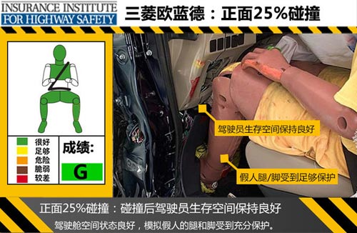 豐田新RAV4的正面40%碰撞測試總成績?yōu)?“G(良好)”,其中各項(xiàng)成績也均為良好,在這項(xiàng)測試中,新車對車內(nèi)人員的保護(hù)充足且到位。三菱歐藍(lán)德這項(xiàng)測試各項(xiàng)成績均為“G”(良好),此車在正面40%碰撞測試中對車內(nèi)人員的保護(hù)同樣全面到位。