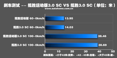 與同級對手相比,攬勝運動版的100-0km/h實測剎車成績僅次于奔馳ML350。而縱觀之前測試過的眾多百萬級SUV來看,它們在制動環節的表現均沒有令人失望。