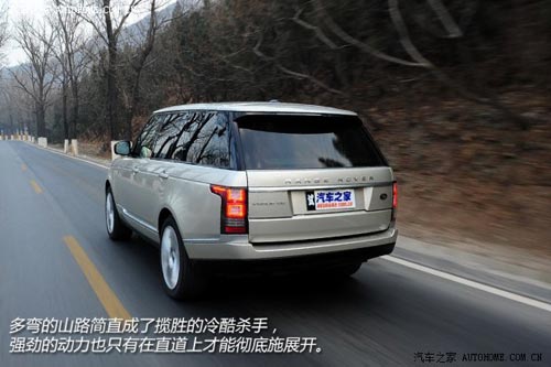 而置身于攬勝當中,整個人瞬間變得緊張了,你會感覺此時駕駛的是個龐然大物。沒錯,開攬勝就會有這樣的感覺,或許許多人覺得攬勝不可替代正是因為喜歡那種高高在上的感覺,可惜我對此卻并不感冒。多彎的山路對于攬勝來說簡直就是個噩夢,盡管懸架后段的支撐力道足夠強,但整體偏軟的調校還是會讓駕駛者手心冒汗。油門踏板略顯遲鈍的調校在這里也會嚴重破壞駕駛者的心情,因為它的節奏總是會慢上半拍,從而影響駕駛者對于出彎點的判斷。我想在這里沒人會再懷念那猶如豪華游艇般的駕乘感受,左搖右晃的后排乘客此刻的想法就更不必多說了。至于換擋撥片,我已經沒心思顧忌了,而且對于這種偏向于舒適的車型來說,換擋撥片出現與否意義并不太大。