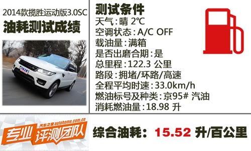 購買攬勝或者攬勝運動版的消費者也許并不會太在意這兩款車的平均油耗,因為土豪們是絕對不會吝嗇那點油錢的。反而對于旁觀者來說,我倒是想看看這兩款車在這一環節會有怎樣的驚人表現。在整個油耗測試過程中,我們經歷了山路、高速路、城市環路以及擁堵等多種路況,每輛車均有3名乘客,最終實測的攬勝運動版綜合油耗為15.52L/100km,攬勝綜合油耗為16.07L/100km,比行車電腦顯示的平均油耗高一些。其中山路和城市街道是比較費油的路段,總體來說,兩款車的油耗成績比較符合我的預期。