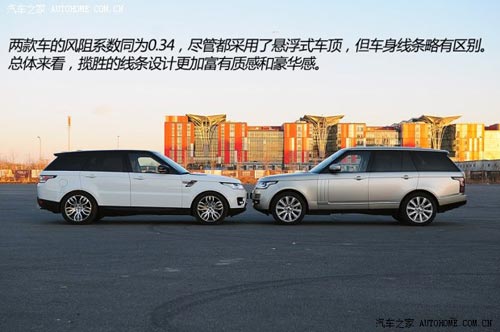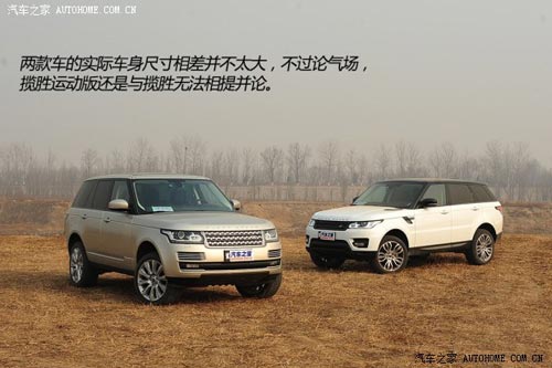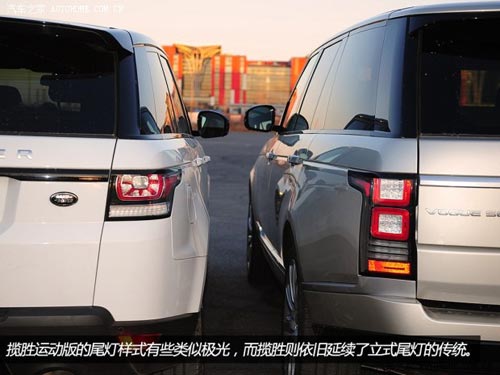 介紹完性能部分,接下來再讓我們回過頭來看一看兩款車的靜態表現。說實話,在單獨駕駛這兩款車的這些天,我并沒有意識到它們在尺寸上差距。然而當我把兩款車擺在一起時,攬勝強大的氣場一下子就顯現了出來,此時的攬勝運動版就像個青澀的毛頭小子站在旁邊,兩款車看上去就好像代表著人生的不同年齡段,攬勝運動版年輕、青澀,而攬勝是那么的成熟、穩重。對于向來喜歡以大為美的國人來說,攬勝所帶來的榮耀感是攬勝運動版無法相提并論的。