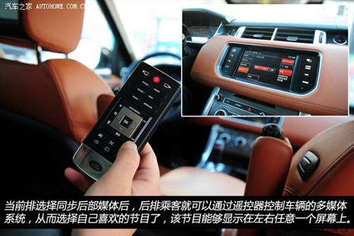 前后排的舒適性基本令人滿意,座椅并沒有一味地追求柔軟舒適,畢竟它的名字叫做“攬勝運動版”,所以包裹性也是必須要注重的。后排的兩個8英寸屏幕對于豪華車來說并不算什么亮點,不過攬勝運動版以及攬勝的這兩塊屏幕是和前排的娛樂系統相連接的,后排乘客通過遙控器就可以直接選擇自己喜歡的節目。