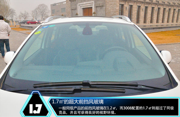 據彭海虎講師介紹,東風標致3008車型采用了面積達1.7㎡的超大前擋風玻璃。相比一般同級產品的1.2㎡而言大出許多,這一點將會幫助駕駛員獲得更加的視野環境,從而保證安全駕駛。這僅僅是只是預防安全中的一點,此外包括顯示屏位置靠上、A柱下方夾角采用透明玻璃以及結冰、未系安全帶等自動提示均可將危險防患于未然。