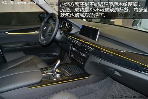 新X5中控臺造型延續了老款車型的設計思路,但更有層次豪華感也得到了提升。除米色內飾外,xDrive30d和xDrive35i(領先型和豪華型)還有黑色、棕色、摩卡色和象牙白色共5種真皮內飾供選擇,xDrive35i尊享型根據外觀風格套件的不同,分別對應有摩卡色(越野內飾風格)和象牙白色(卓越內飾風格)2種內飾顏色供消費者選擇。