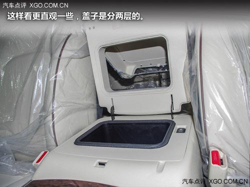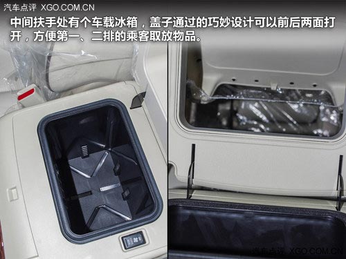 像途樂這種全尺寸的SUV根本無需節省空間,一個車載冰箱就這樣被安置在前排中間扶手。而且蓋子是可以前后雙向打開,方便前后乘客取放物品。