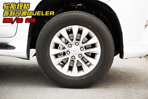 輪胎方面,GX400配備了普利司通高性能越野輪胎DUELER動力俠輪胎,在保證了越野性能外,同時兼顧了舒適和靜音性。