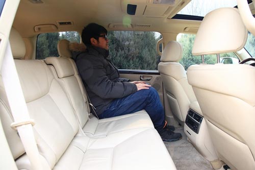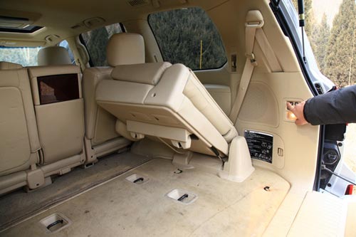 雷克薩斯LX570:外觀更加時尚 輕松應對越野(3) 最后編輯:2014-3-31 13:13:00 來源: 作者: 全國 空間:舒適性為首要LX570的前后座椅都可以算的上是沙發般的舒適,能夠給乘坐者不錯的感受。身高1.76米的體驗者在前排乘坐時的頭部空間約為一拳有余。第二排座椅坐墊可以前后移動,靠背可多角度可調。在長途旅行中后排乘客可以得到放松。第二排座椅的前后移動也可以為第三排乘客調整合理的腿部空間。第二排中央扶手放倒后,可以呈現水杯架及儲物盒。第二排座椅的腿部空間超過兩拳,而頭部空間有一拳多。地板非常平整,中間乘客舒適度有保障。LX570由于有第三排座椅,因此在進入第三排時,僅需折疊前排座椅便可進入,進入過程并不費力。第二排座椅如果比較靠后,第三排乘客的腿部空間就非常局促了,從圖中可以看出,由于第三排坐墊比較低矮,所以腿部彎曲角度比較大,不適合長途乘坐。而頭部空間約為一拳。第三排座椅的開啟與放倒均為電動功能,可自動收起。不過頭枕需手動打開。LX570的后備箱在第三排座椅收起的情況下,還是比較工整的,空間也比較寬大。行李艙容易為259-701升。LX570的儲物空間方面較為豐富,手套箱內部進深大,實用率很高。四車門均有水杯架及儲物盒。上頁1234下頁 責任編輯:管理員