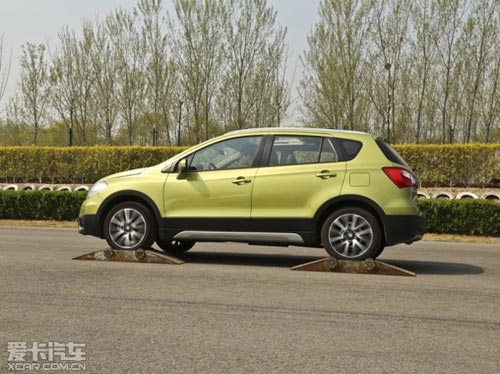 接下來是單側雙車輪打滑測試,長安鈴木鋒馭的表現依然比較從容。在ESP開啟狀態下,當電子系統探測到左邊車輪處于持續打滑狀態時,系統迅速將動力盡量分配到右側著地的兩個車輪,提供了有效的抓地力,使鋒馭輕松地從測試架上駛出。