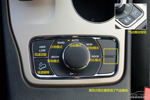 大切3.0TD柴油車型采用的四驅系統仍舊為Quadra-Trac II全時四驅,配合更加豐富的Selec-Terrain路況牽引力控制系統,擁有多達7種的駕駛模式一樣沒少。而唯一的區別在于取消掉了Quadra-Lift空氣懸架系統,有些遺憾。