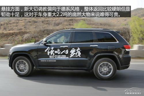 在實地越野測試中,大切諾基作為一臺城市型SUV來說,離地間隙、接近角和離去角算的上是優秀了,所以在普通坑洼較多的路面你還可以玩一把飛馳,另外需要注意的是深溝還是必須避開,尤其的是下坡時,對于3.0TD柴油版車型沒有配備空氣懸掛讓我們感覺很遺憾。不過就整體來說大切諾基的越野能力在城市SUV中算是出色了,3.0TD的爆發力比我們想象中要強大很多,要挑戰更極限的越野,只需把嬌氣的公路輪胎換掉即可。