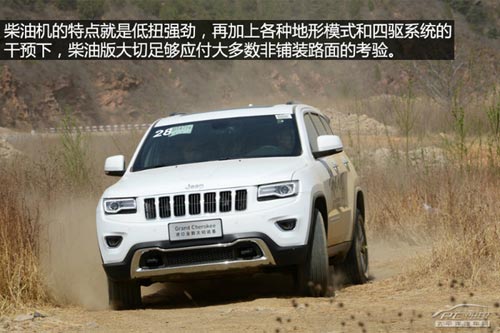 在封閉場地駕駛中,3.0TD柴油版車型也讓我們給出了很高的評價。大量碎石與沙土組成的越野場地,對于擁有較高姿態的大切諾基來說完全不是問題,駕駛時僅需要小心一些尖銳石頭,畢竟我們試駕的車型裝配的只是原廠功能輪胎,對于野外無法預料的駕駛還是安裝上專業的越野輪胎最為恰當。