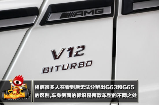相信很多人在看到后無法分辨出G63和G65的區別,實際上外觀的區別也是非常細微的,車身側面的標識是兩款車型的不同之處,而在打開引擎艙后才會發現奔馳G65 AMG的動力來源——AMG調校后的6.0升V型12缸雙渦輪增壓發動機。