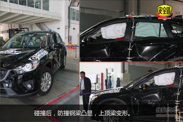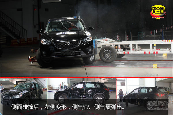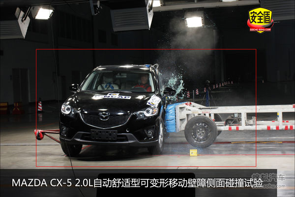 2014年5月7日下午2點,中國汽車技術(shù)研究中心碰撞實驗室對長安馬自達(dá)汽車有限公司生產(chǎn)的馬自達(dá)牌/MAZDA CAM6460B5型多用途乘用車(MAZDA CX-5 2.0L自動舒適型)完成了“可變形移動壁障側(cè)面碰撞試驗”。