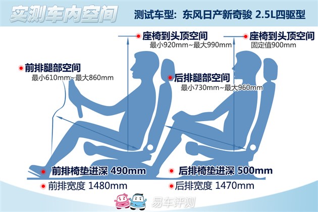 大多數國內消費者對于空間的要求非常高,基本上以能蹺二郎腿為最優。新奇駿的長寬高分別為4643mm、1820mm、1724mm( 2.5L四驅頂配車型的車身高度為1722mm),軸距為2706mm,老款車型的車身尺寸為4635mm、1790mm、1785mm,軸距為2630mm,新車相比老款車型,除高度降低了61mm外,均有所提升,更為寬大的車身尺寸也為其提供了更加充沛的空間表現。此外,平整的后排地板也是其亮點之一,即便是在后排坐滿3人的情況下,中間的人也不會感覺到腿沒有地方放。