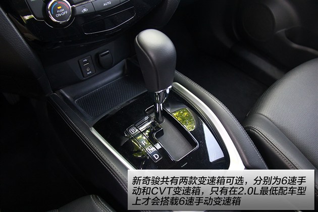 新奇駿分別搭載了2.5L和2.0L兩款發動機,2.0L發動機的最大輸出功率為110kW,峰值扭矩為200Nm,而排量相對較大的2.5L發動機的最大輸出功率為137kW,峰值扭矩可達233Nm,這一數據相比老款車型的135kW、227Nm均有小幅度提升,當然這微乎其微的數據提升在日常的駕駛中幾乎是完全感覺不出來的。在變速箱方面,新車配備了6速手動和XTRONIC CVT變速箱,只有2.0L兩驅時尚版配備了6速手動變速箱,其它車型均配備CVT變速箱。