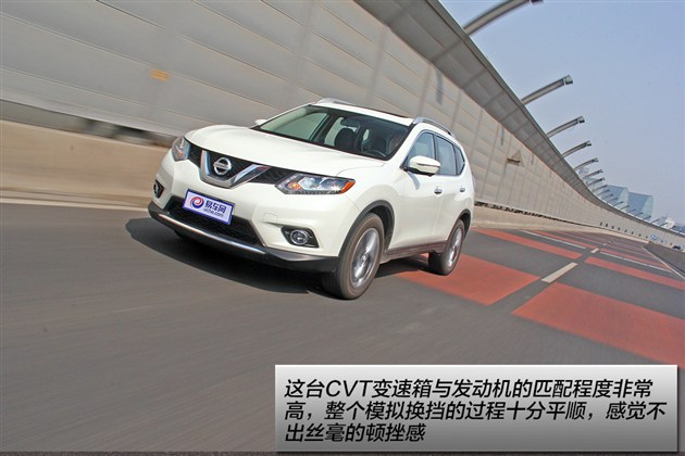 新車共有兩款變速箱可選,分別為6速手動變速箱和XTRONIC CVT變速箱,僅有2.0L兩驅時尚型(最低配車型)搭載了6速手動變速箱,其它2.0L和2.5L車型均采用了XTRONIC CVT變速箱。這次的測試車采用的也是XTRONIC CVT變速箱,該變速箱與發動機的匹配度非常高,整個模擬換擋的過程絲毫感覺不到頓挫和不適。