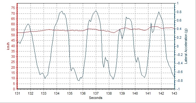 相對更高的重心以及柔軟的懸掛調校在為新奇駿帶來了種種優勢的同時,繞樁測試可以用一首《沒那么簡單》來形容。在18米穿莊的測試中,很高的重心以及柔軟的懸掛都給新奇駿帶來了不小的麻煩,在極限駕駛的情況下,車身的側傾現象比較嚴重。